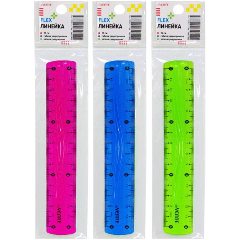 Линейка "deVENTE. Flex" гибкая 15 см, прозрачная цветная. Гибкий полупрозрачный пластик с чёрной двойной градуировкой. Упакована в пакет с европодвесом.