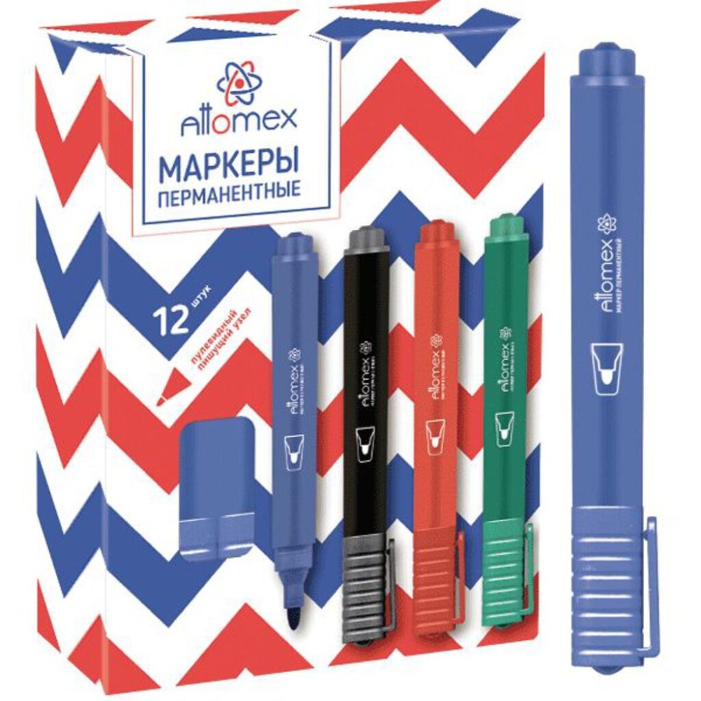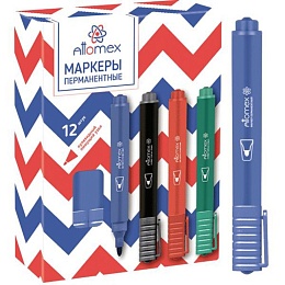 Маркер перманентный "Attomex" круглый корпус, пулевидный наконечник, ширина линии 3 мм, синий.