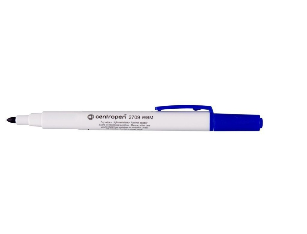 Маркер для доски CENTROPEN. Маркер предназначен для письма на специальной белой доске, содержит безвредные стираемые чернила на спиртовой основе. На корпусе емеется удобный зажим. Круглый наконечник. Ширина линии письма: 1,2 мм.