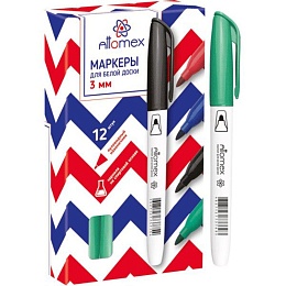 Маркер для белой доски "Attomex" круглый корпус с клипом, пулевидный наконечник, ширина линии 3 мм, зеленый