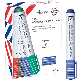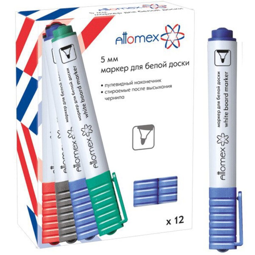Маркер для белой доски "Attomex" круглый корпус с клипом, пулевидный наконечник, ширина линии 5 мм, синий