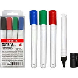 Набор маркеров для белой доски "deVENTE" (04 цв - зел, красн, син, черн) круглый корпус, колпачок с клипом, пулевидный наконечник, ширина линии 3 мм, в пластиковой коробке
