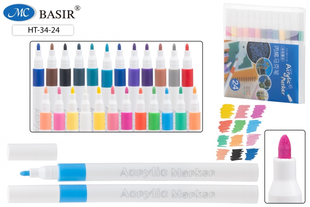 Набор маркеров акриловых 24цв. пулевидн. "Basir" 1-2,4мм