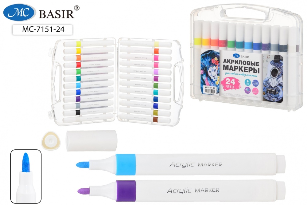 Набор маркеров акриловых 24цв. пулевидн. "Basir" 2-4мм