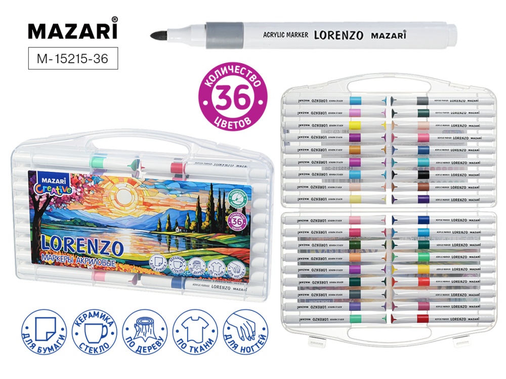 Набор маркеров-акриловых: ваш идеальный выбор для творчества! Данные маркеры имеют водную основу и при высыхании наконечник нужно поместить в теплую воду. Маркеры подходят для рисования по любой поверхности. Маркеры "MAZARI" - идеальный инструмент для иллюстраторов, студентов и всех, увлекающихся творчеством. Используются для создания эскизов, орнамента на кружках, одежде, зеркалах, аксессуарах, текстиле и многом другом, все зависит от Вашего воображения!.