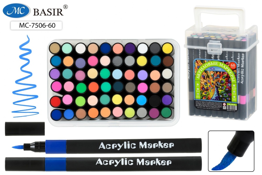 Набор маркеров акриловых 60цв. кистевидн. "Basir. Павлин" 1-5мм