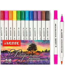 Набор маркеров акварельных 12цв. кистевидн./файнлайнер"deVENTE.", двусторон.