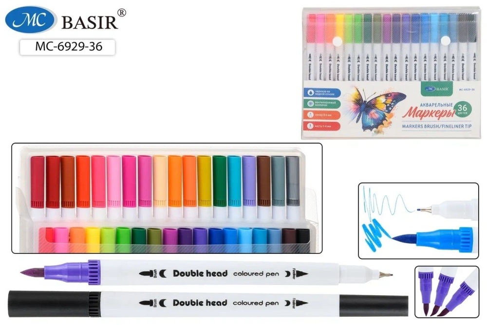Набор маркеров акварельных 36цв. кистевидн./файнлайнер "Basir" двусторон.