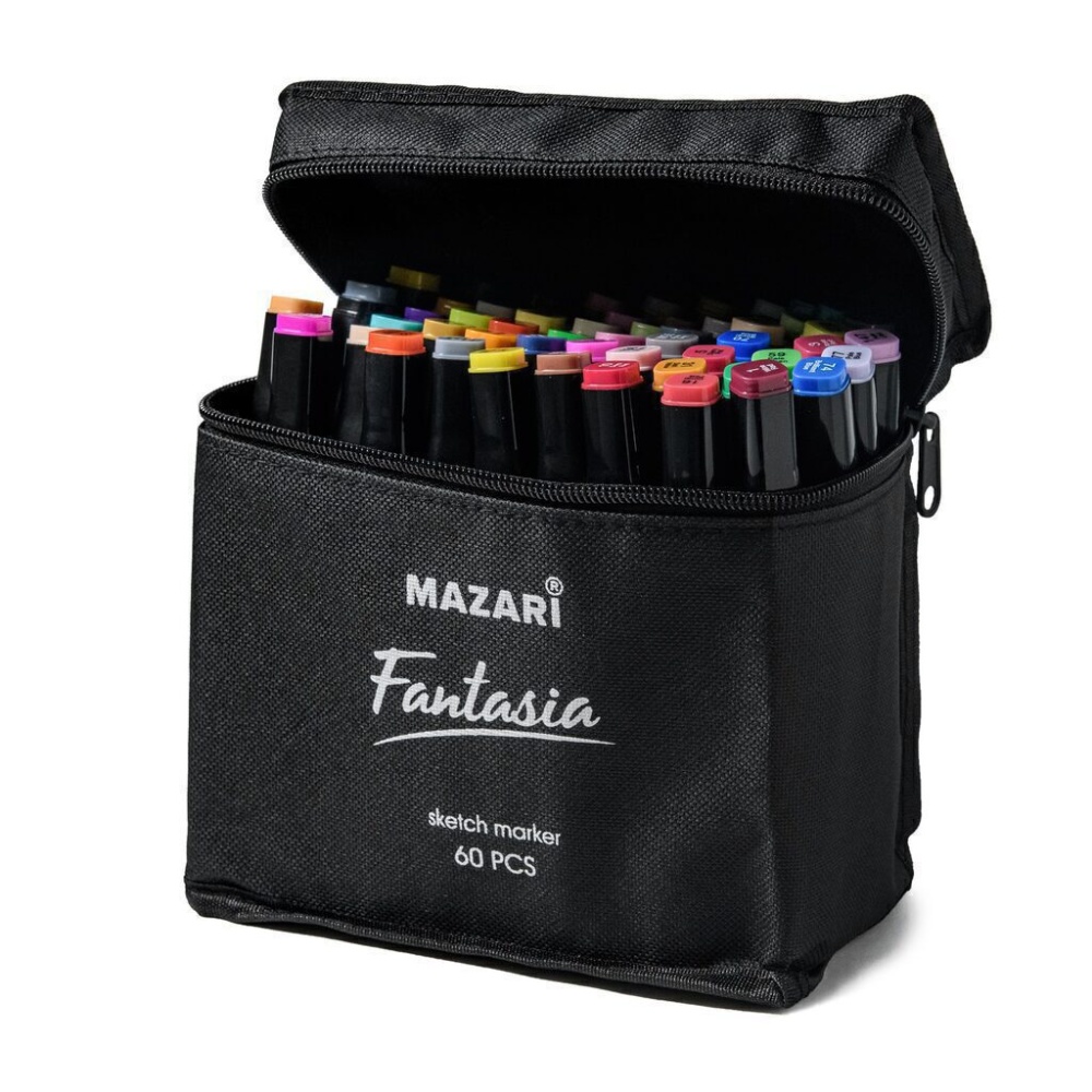 Набор маркеров для скетчинга двусторонних FANTASIA, 60 цв., пулевид./клиновид.наконечники, пиш.узлы 3.0-6.2 мм, текстильный чехол на молнии, ОПП-упаковк
