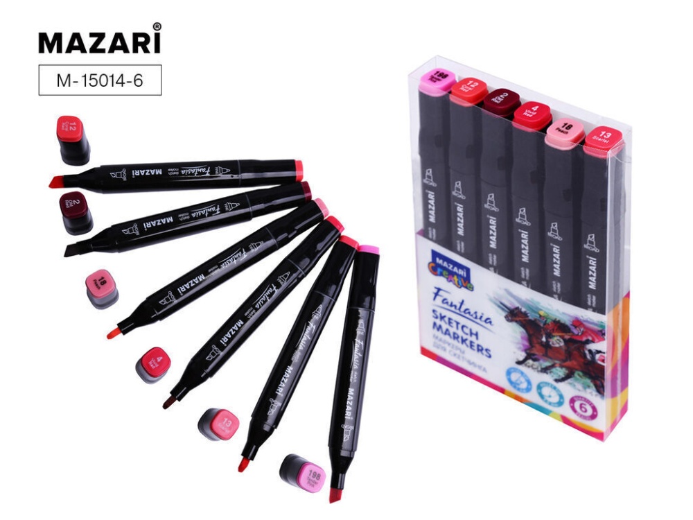 Набор маркеров для скетчинга двусторонние FANTASIA, 6цв., Pink colors (розовые цвета), пулевид./клиновид. наконечники, пиш.узлы 3.0-6.2мм, ПВХ- упаковка