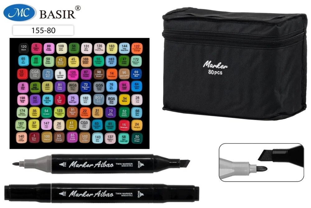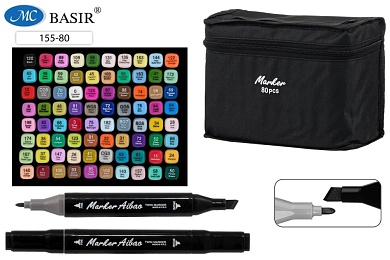 Набор маркеров для скетчинга 80цв. пулевидн. BASIR, двустороние 1,0-7,0мм