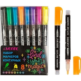 Набор маркеров контурных "deVENTE. Outliner" 8 цветов, круглый корпус, пулевидный наконечник, ширина линии 2 мм, в пластиковой упаковке