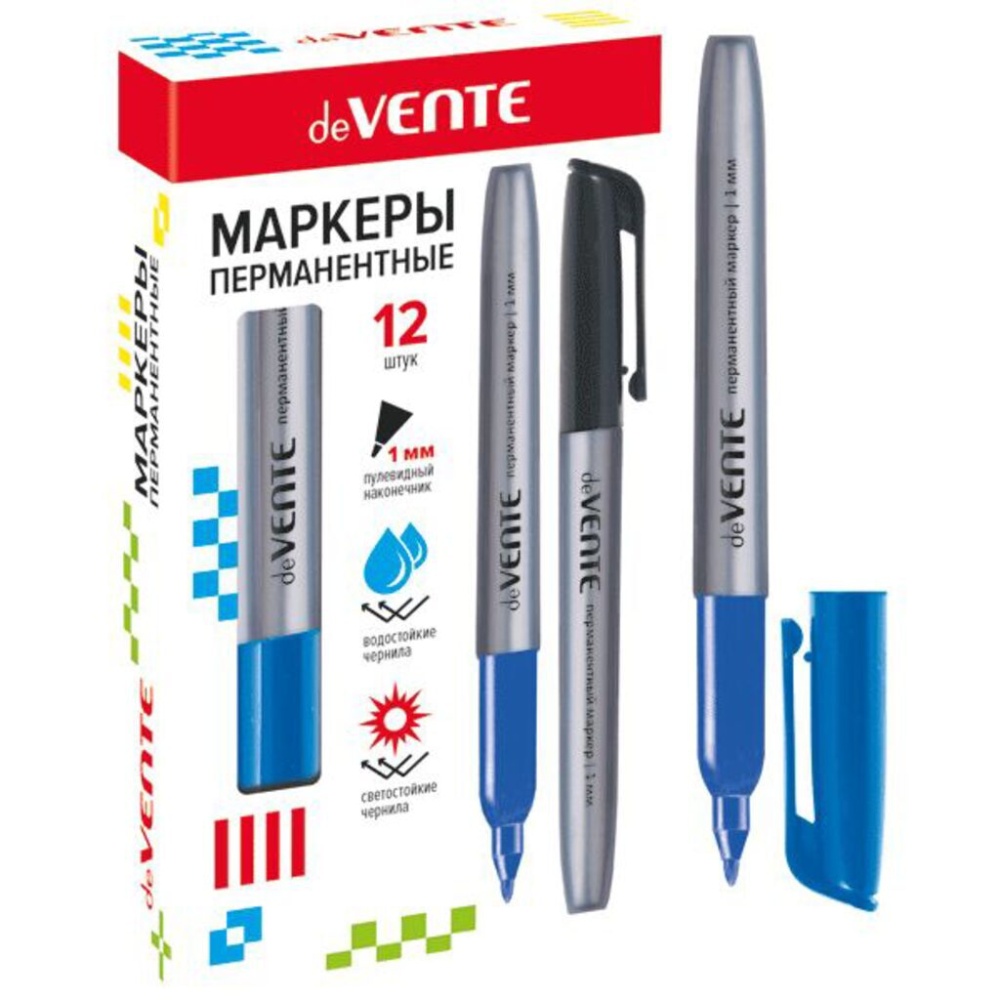 Маркер перманентный "deVENTE" круглый корпус, с клипом, пулевидный наконечник, ширина линии 1 мм, синий