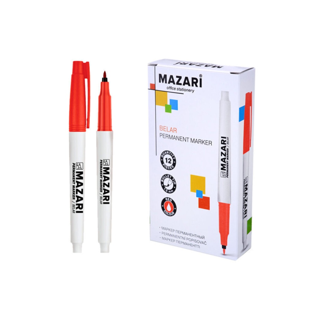 Маркер перманентный BELAR, КРАСНЫЙ, пулевидный наконечник, ширина линии письма 1.5мм, картонная упаковка