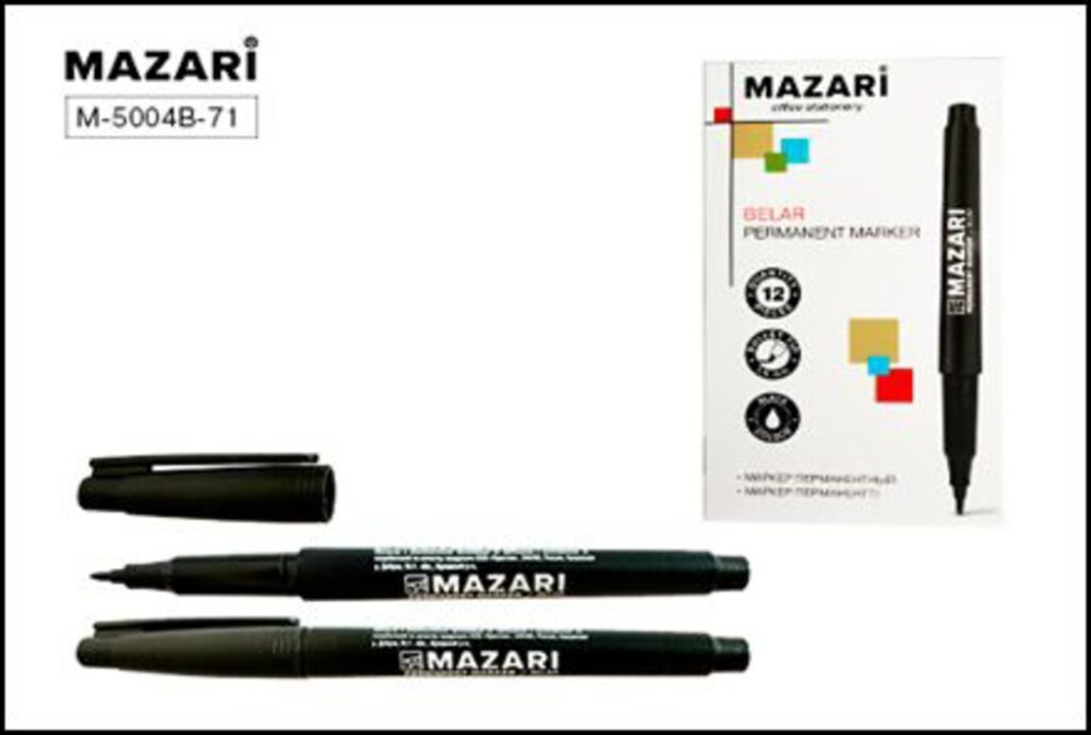 Маркер перманентный BELAR, пулевидный наконечник, ширина линии письма 1.5мм, картонная упаковка