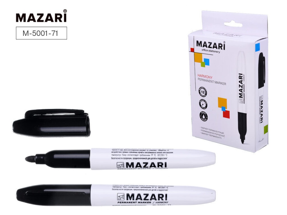 Маркер перманентный HARMONY,  пулевидный наконечник, ширина линии письма 2мм, картонная упаковка