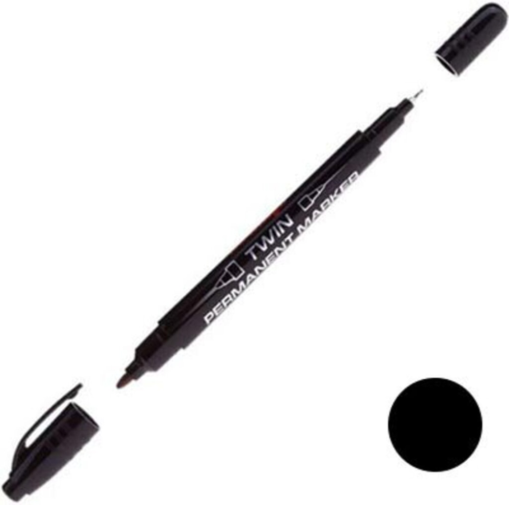 Маркер перманентный двухсторониий 0,7мм и 1мм черный, Luxor "150" пулевидный наконечник