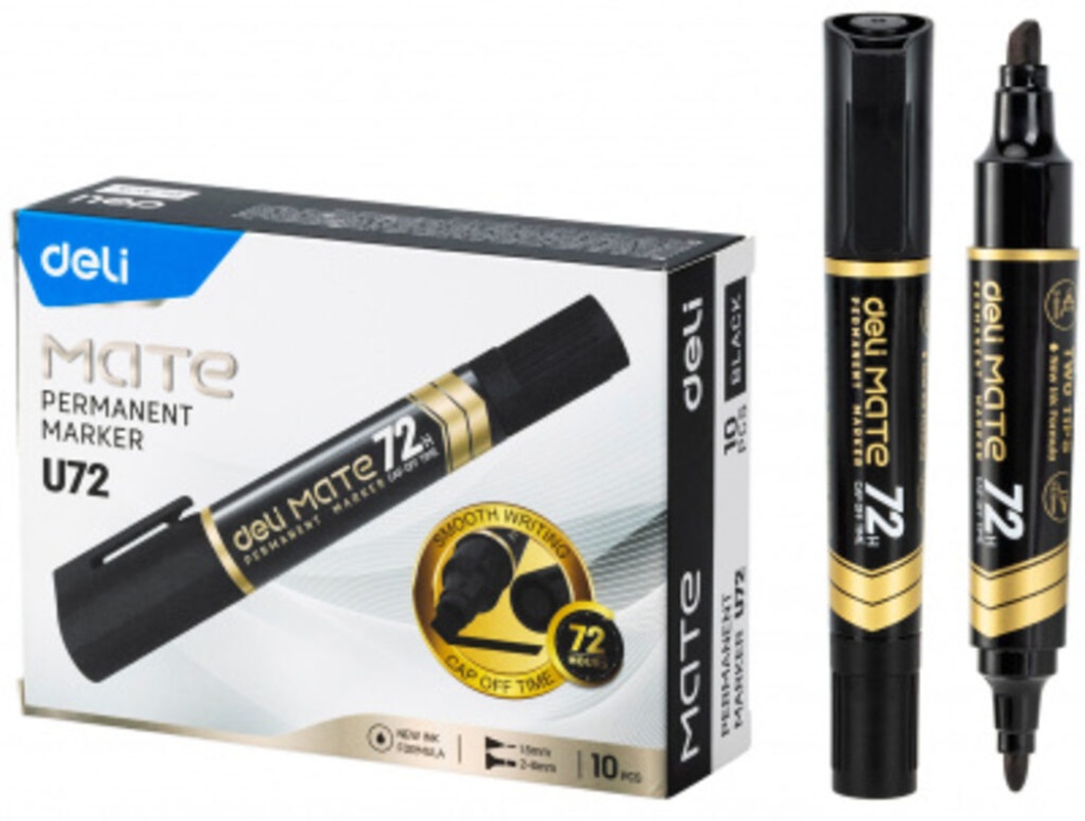 Маркер перманентный Deli EU72-BK двойной пиш. наконечник 1-5мм черный