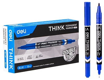 Маркер перманентный Deli EU72-BL двойной пиш. наконечник 1-5мм синий