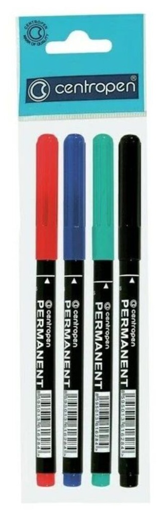 Набор маркеров перманентных 4цв 2.0 мм Centropen 2536, лин 1мм, пакет с европодвесом Перманентные маркеры на спиртовой основе Centropen (4 цвета) предназначены для письма на гладких поверхностях. Имеют круглый наконечник, вентилируемый колпачок, удлинённый тонкий корпус, треугольный профиль в месте захвата, отвечающий самым современным тенденциям в области эргономики письма и черчения. Ширина линии: 1 мм.