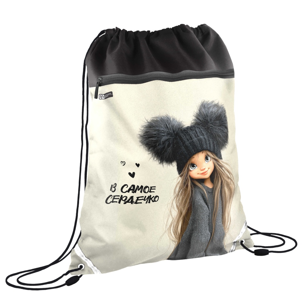 Мешок для обуви 1 отд, 360*480 карман, светоотр. "Девчонка в шапке"