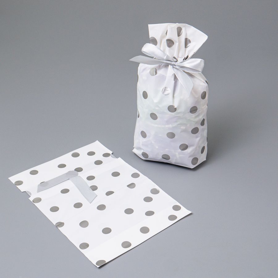 Мешок подар. ПВХ лентой 12*18см "Горох" серебро 50шт/уп
