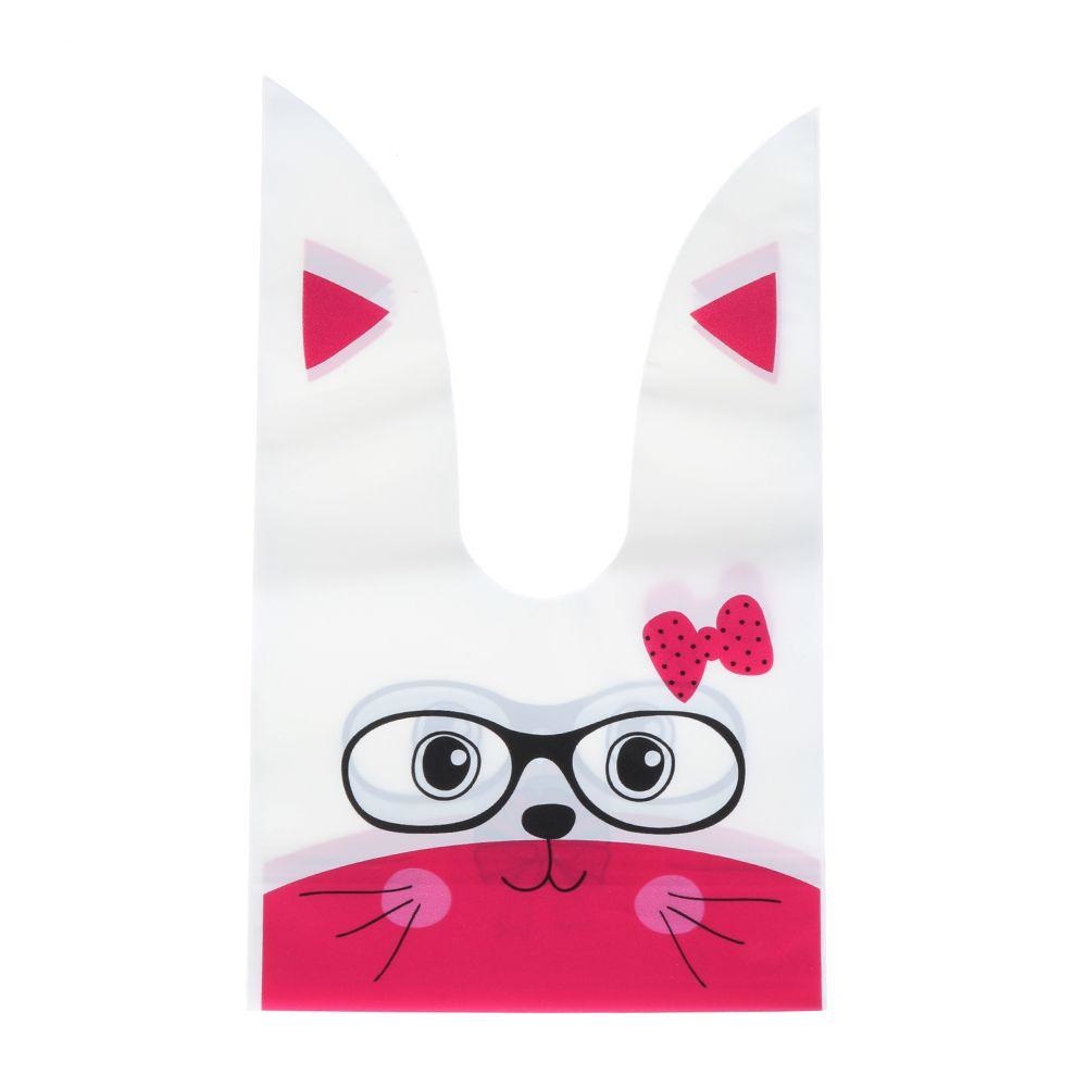 Мешок подар. ПВХ с ушами 13*22см "Заяц в очках" розовый 50шт/уп