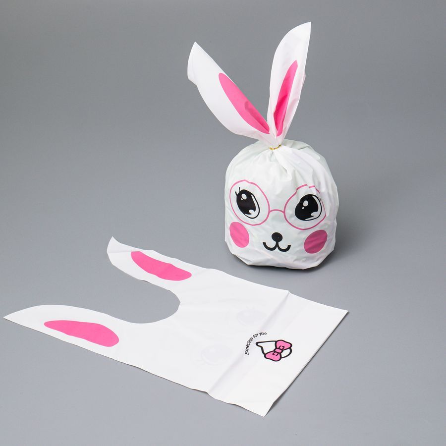 Мешок подар. ПВХ с ушами 16*27см "Зайчик в очках" 50шт/уп