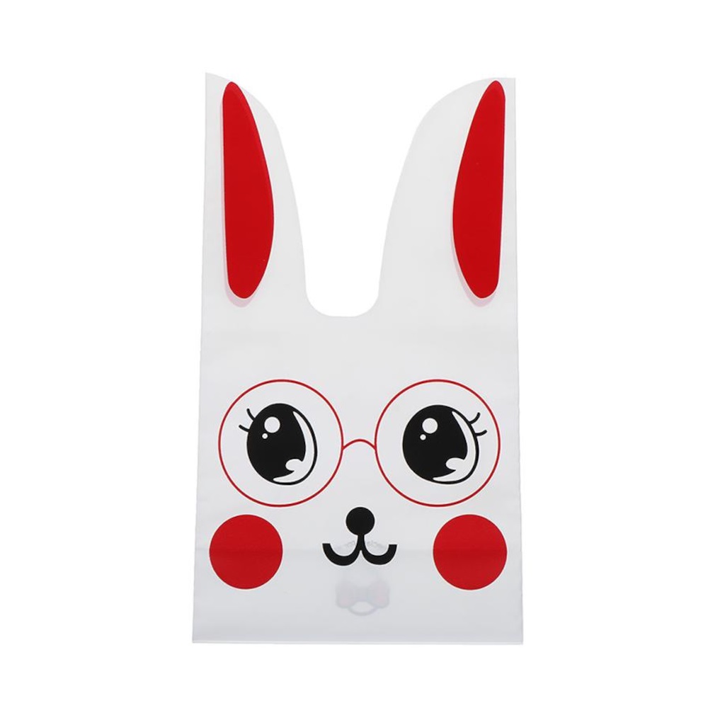 Мешок подар. ПВХ с ушами 18*30см "Заяц в очках" красный 50шт/уп