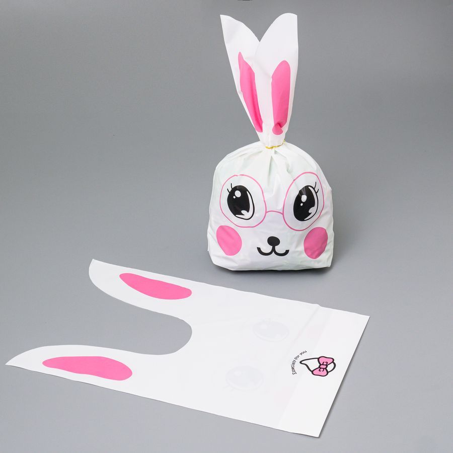 Мешок подар. ПВХ с ушами 20*33см "Зайчик в очках" 50шт/уп