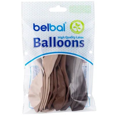 Шарики продаются в ненадутом виде. В пакете 12 шаров, ассорти из трех цветов кофейных оттенков: латте, мокко, эспрессо. Тип шара пастель. Цвет шара имеет матовый оттенок. Размер шара в надутом виде 36см. Шары Belbal имеют сертификат Intertek Tickmark, который гарантирует их безопасность. Изготавливаются из экологически безопасного 100%-ного натурального латекса. В окружающей среде разлагаются на безопасные компоненты примерно с той-же скоростью, как обычные листья деревьев. После использования шар рекомендуется лопнуть и утилизировать как бытовой отход.