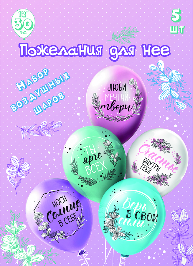 Набор шаров с рисунком 12" Для нее! 5шт/уп