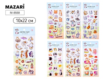 Наклейки декоративные КОТИКИ, 10*22 см, 6 дизайнов, ОПП-упаковка