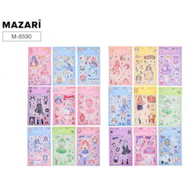 Наклейки декоративные АНИМЕ девочки, 11,5*19 см. 18 дизайнов