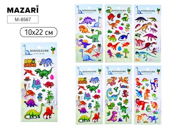 Наклейки декоративные ДИНОЗАВРЫ, 10*22 см, 6 дизайнов