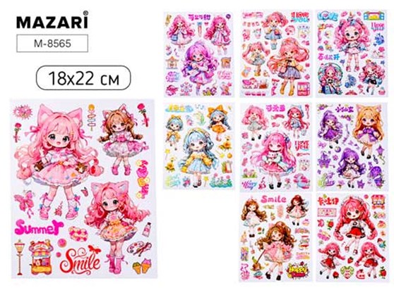 Наклейки декоративные КУКЛЫ, 18*22 см, 9 дизайнов