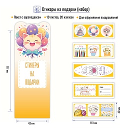Набор поздравительных наклеек (20 шт. на 10 листах): Обложка картон. Наклейки самоклеющаяся бумага, фигурная вырубка. Размер листа 110х40 мм. Упаковка: в пакете с европодвесом.