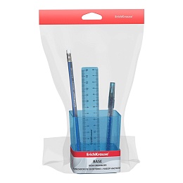 Готовый набор с наполнением. Универсальная подставка изготовлена из высококачественного пластика. В комплекте 3 предмета: ручка, карандаш, линейка. Наполнение может отличаться от представленного.