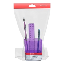 Готовый набор с наполнением. Универсальная подставка изготовлена из высококачественного пластика. В комплекте 3 предмета: ручка, карандаш, линейка. Наполнение может отличаться от представленного.