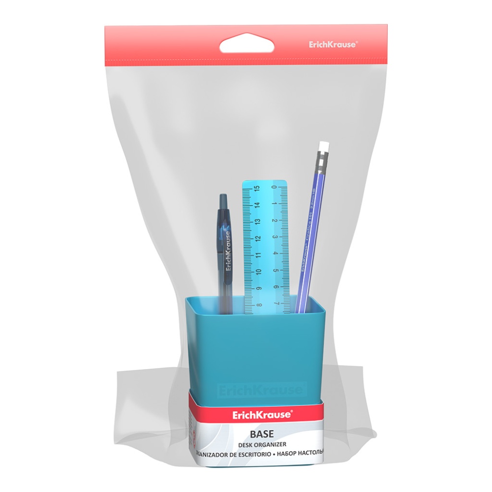 Готовый набор с наполнением. Универсальная подставка изготовлена из высококачественного пластика. В комплекте 3 предмета: ручка, карандаш, линейка. Наполнение может отличаться от представленного.