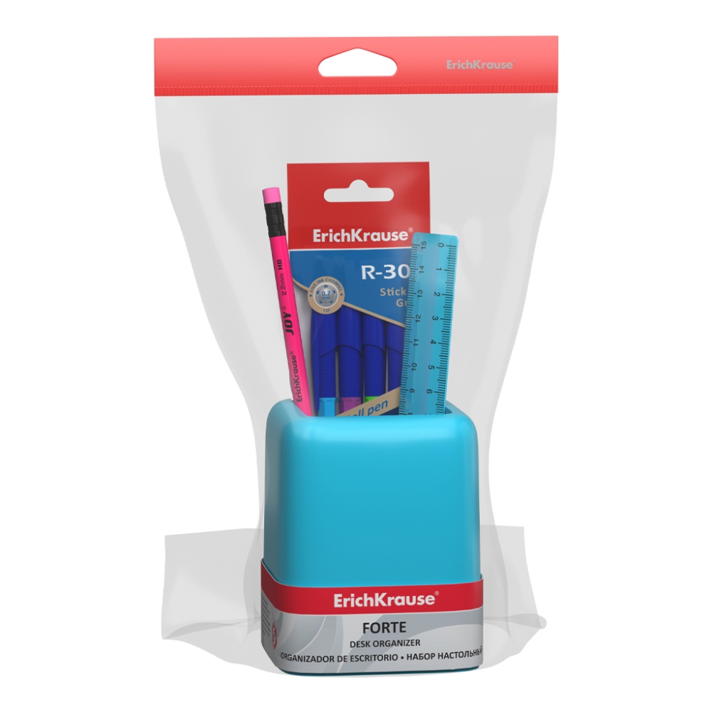 Набор настольный пластиковый ErichKrause Форте, Жвачка, голубой с розовой вставкой