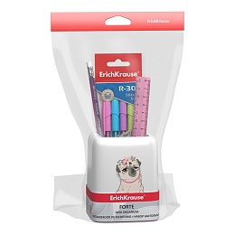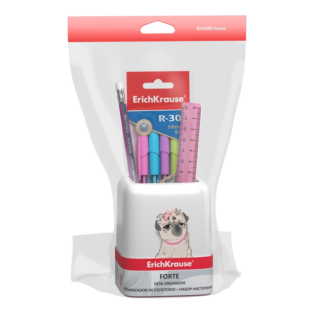 Набор настольный пластиковый ErichKrause Форте, Мопс на каникулах, белый с розовой вставкой
