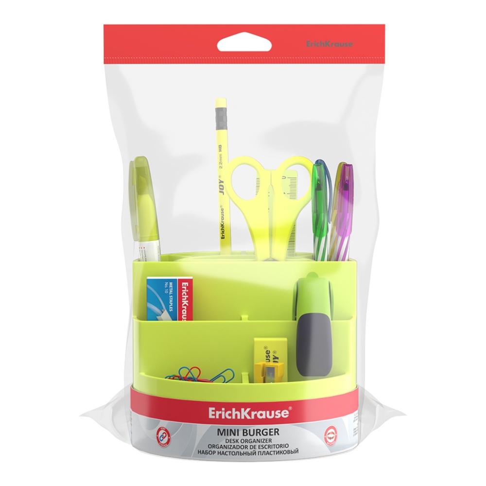 Набор настольный вращающийся пластиковый ErichKrause Мини-бургер, Непрозрачный неон, желтый