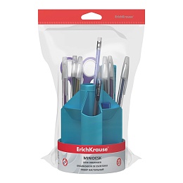 Набор настольный вращающийся пластиковый ErichKrause Мини органайзер, Ледяной металл, голубой