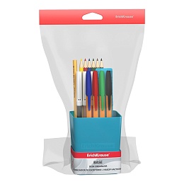 Готовый набор с наполнением для школьников. Универсальная подставка изготовлена из высококачественного пластика. В комплекте 18 предметов: 4 ручки, карандаш, 6 цветных фломастеров и карандашей, линейка. Наполнение может отличаться от представленного.