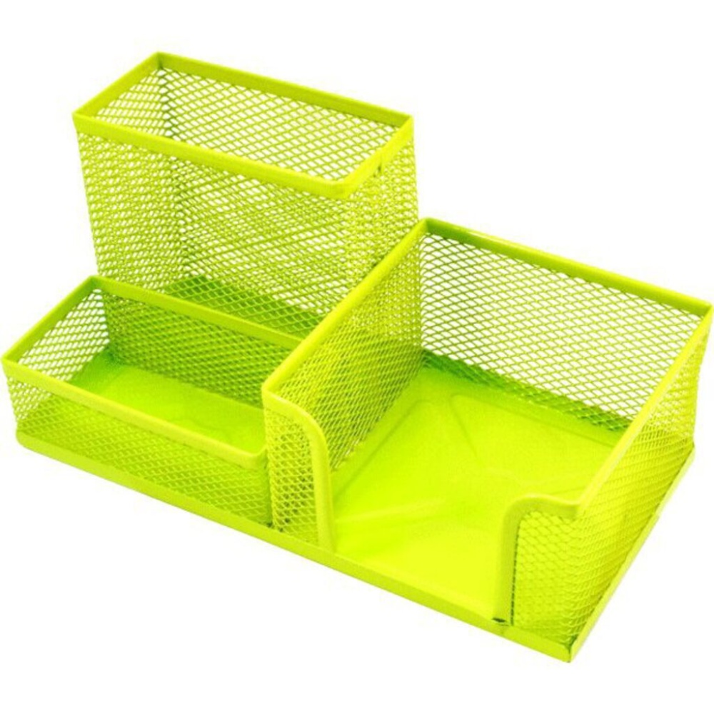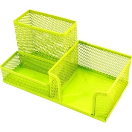 Подставка настольная,  для канцелярских принадлежностей . Размер  20.3x10.4x9.8секции, металлическая сетка, цвет салатовый