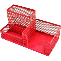 Подставка настольная,  для канцелярских принадлежностей . Размер  20.3x10.4x9.8 секции, металлическая сетка, цвет ярко-розовая