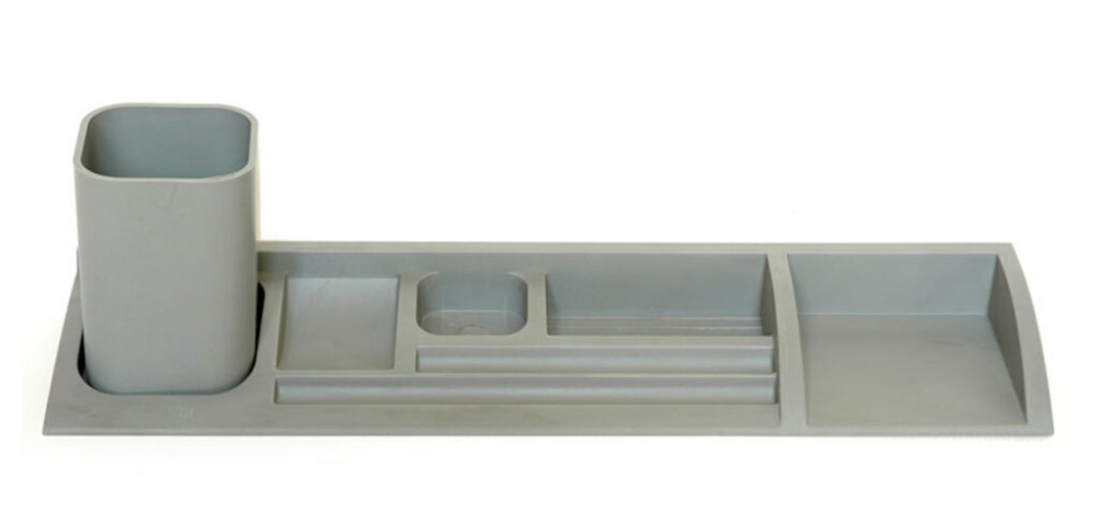 Включает в себя карандашницу, блок для заметок, отделения для канцпринадлежностей. Оригинальный дизайн, компактно располагается на столе. Размер 400x100x105 мм