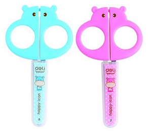Ножницы Deli детские 128 мм. изготовлены из высококачественной и прочной стали, что обеспечивает их длительное использование и качественный разрез материалов. Удобная конструкция позволяет детям свободно работать с бумагой, картоном, скотчем и тканями: кольца ножниц не создают дискомфорта при длительном использовании, лезвия закруглены. Приятный бонус - защитный чехол. Удобный и безопасный вариант для школьного использования с причудливым дизайном.