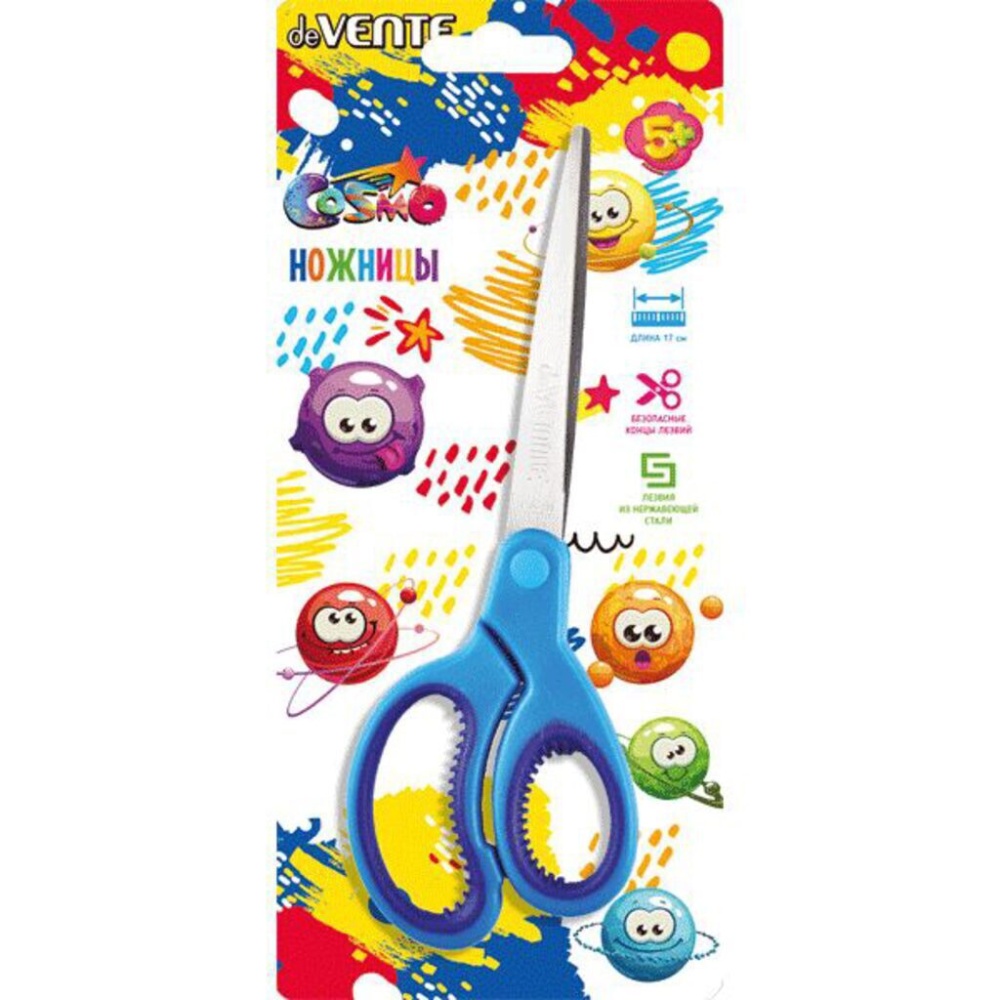Ножницы детские "deVENTE. Cosmo" 17 см, двухцветные прорезиненные кольца c лепестками, в картонном блистере